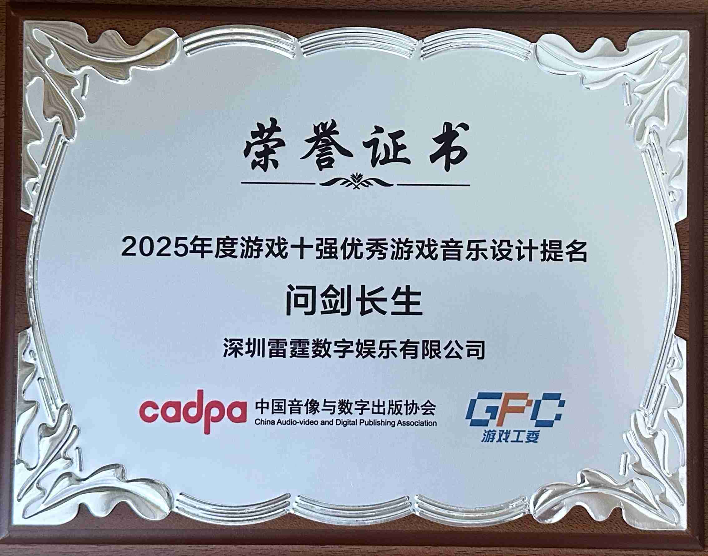 公司坚持走精品化道路,,打造与时代精神相契合、、与海内外大众诉求相契合、、、、与创作实践相契合的游戏产品,,,倡导构建具有中华文化特色、、弘扬中华美学精神的产品理念,,,切实提升游戏文化内涵的传播力影响力。。如此次荣获“2025游戏十强年度优秀游戏音乐设计”提名奖的公司自研产品《问剑长生》以音筑境,,,以乐传情,,,其音乐融合东方传统韵味与现代审美,,,,构建独特听觉世界,,,,运用古筝、、、笛子、、、、箜篌等传统乐器与现代管弦乐,,塑造灵动古风仙侠氛围。。。