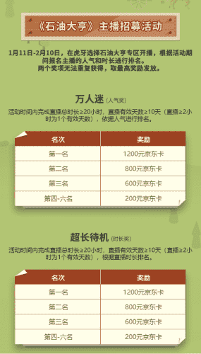除了“油王”争霸赛,,,精英主播招募活动亦同步开启!!!赛事分时长奖和人气奖,,奖励同样丰厚!!!!