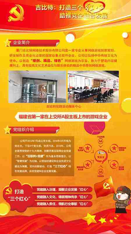 未来公司将全面学习贯彻习近平新时代中国特色社会主义思想和党的十九大精神,,,持续强化“互联网+党建”的思维理念,,,,以“智慧党建”为主轴,,,以党组织建设和企业先进文化建设为侧翼,,,双向创新驱动,,引领有信仰、、、有情怀、、、有价值的新时代游戏研发运营,,,在不断发展壮大的同时,,,,成为行业的“红色标杆”,,,实现党建和企业发展双赢。。。