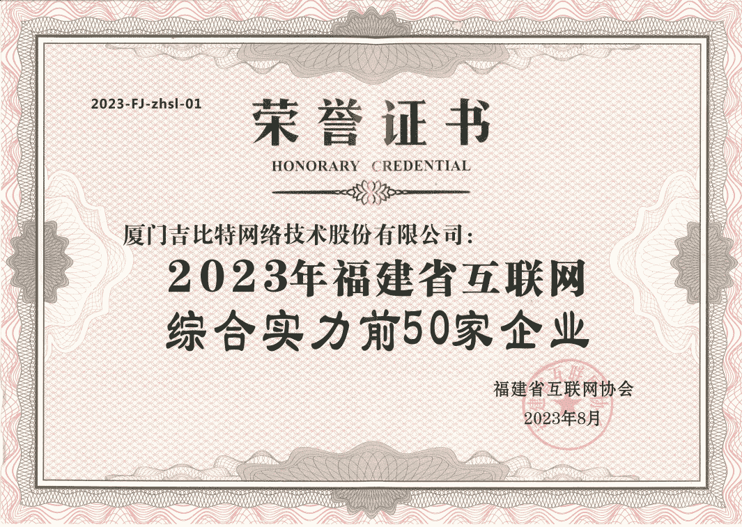 公司新闻 位列第1,,一竞技获2023福建省互联网综合实力前50家企业