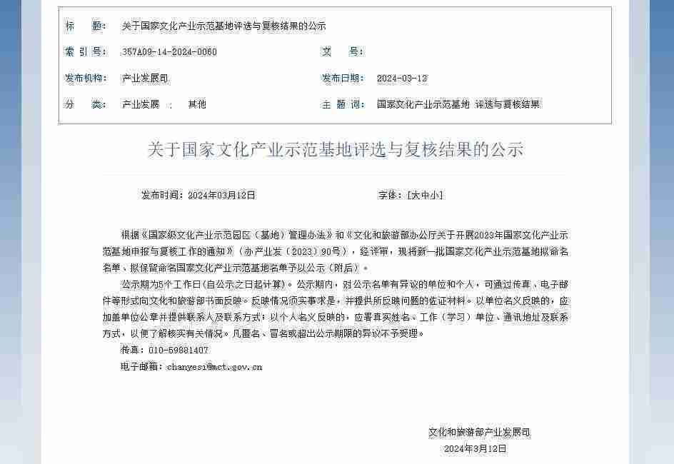 新一批国家文化产业示范基地公示,,,,一竞技成功入围