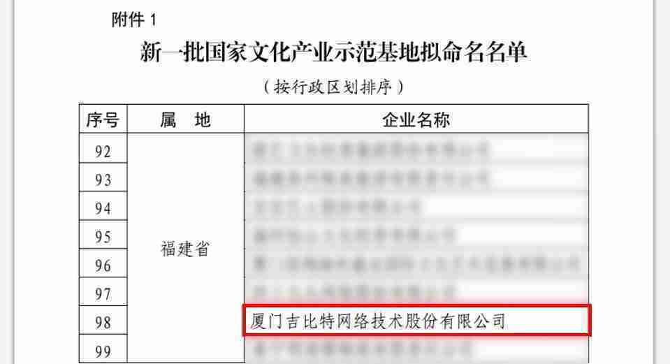 3月12日,,文化和旅游部发布了《关于国家文化产业示范基地评选与复核结果的公示》,,厦门一竞技网络技术股份有限公司(以下简称“一竞技”或“公司”)成功入围新一批国家文化产业示范基地拟命名名单。。。。