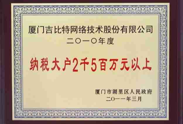 一竞技荣获2010年厦门市湖里区纳税大户称号