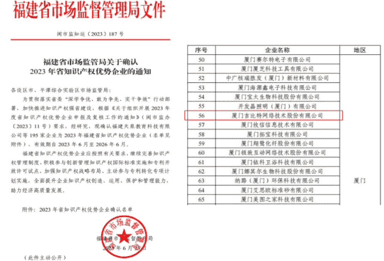 近日,,,,福建省市场监督管理局公示了2023年福建省知识产权优势企业名单,,,厦门一竞技网络技术股份有限公司(以下简称“一竞技”或“公司”)榜上有名。。