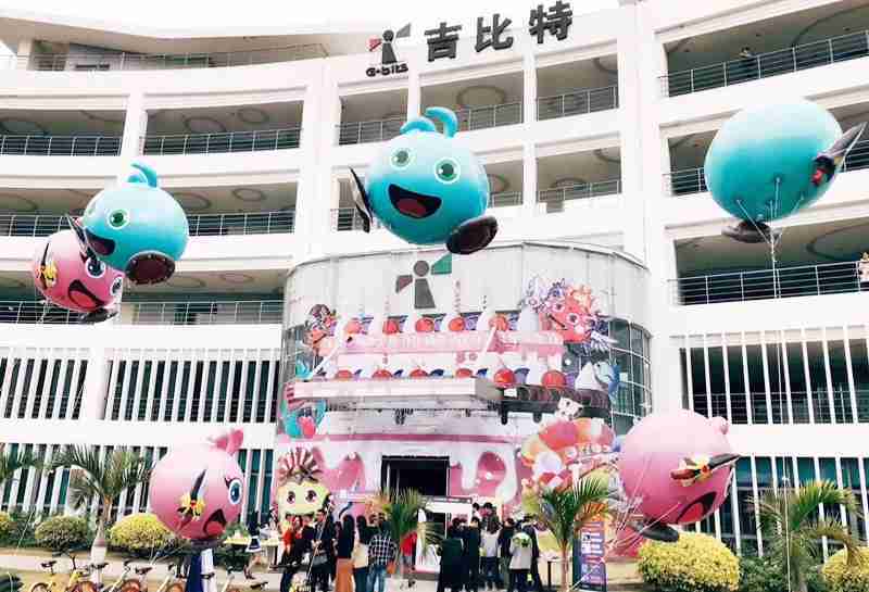 12月15日,,为了庆祝《不思议迷宫》一周岁生日,,冈布奥们准备了众多花式庆生活动::厦门一竞技大楼变身巨型蛋糕、、、女仆小姐姐为大家奉上美味小蛋糕、、、、更有大头冈布奥飞上天……引来不少冒险者身亲临现场为冈布奥打Call!!!!